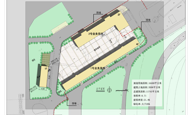用地面积16400平方米。建筑占地面积3598平方米。设计构思: