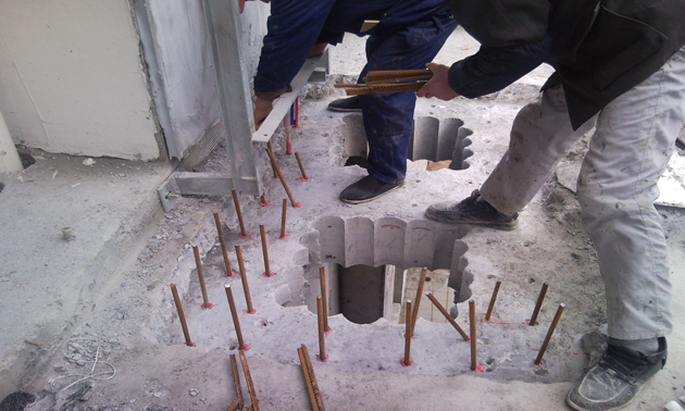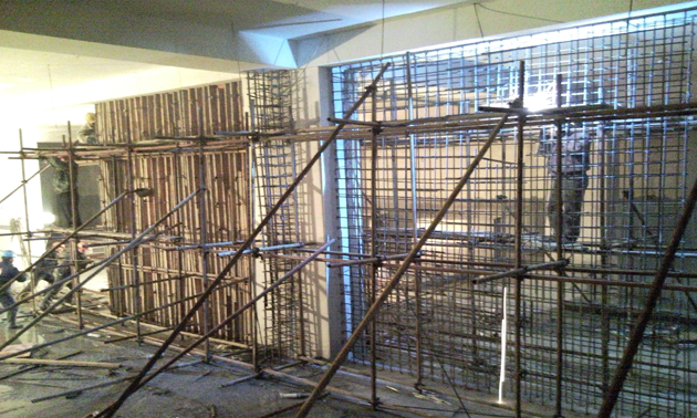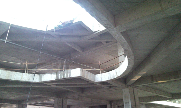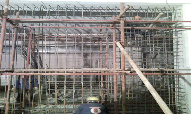 原结构为地下二层,上部五层框架剪力墙结构,桩筏基础。建筑局部使用功能调整,楼板洞口局部封堵,汽车电梯间改造,托梁抽柱。